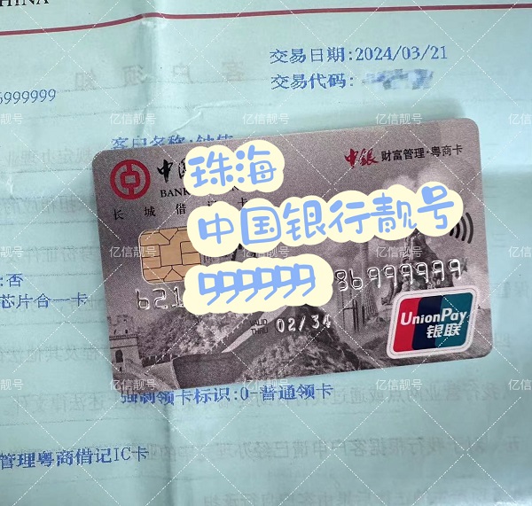 恭喜珠海的一位银行卡靓号爱好者,历史二十天左右,成功办理中国银行尾数999999借记卡卡号。中国银行有普卡,金卡,白金卡,钻石卡和私人银行卡多个等级。不同等级中都有不同的卡板可以个性化定制卡号。常见的有冰雪卡、生肖卡、金卡、白金卡(财富管理卡)、钻石卡和私行卡。对客客户办理要求有所不同,一般在20-500万不等。